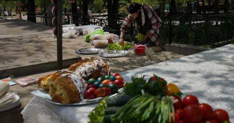 În dimineața zilei de 20 aprilie, tradiția cere ca mormintele să fie bine îngrijite, crucile curățate și împodobite cu flori proaspete. Sub supravegherea preoților care oficiază slujbe de pomenire direct la locurile de veci, se aprind lumânări ce simbolizează lumina veșnică. Un ritual central este oferirea de pomană, pachetele cu ouă roșii, pască, cozonac și colivă fiind împărțite celor nevoiași sau apropiaților.